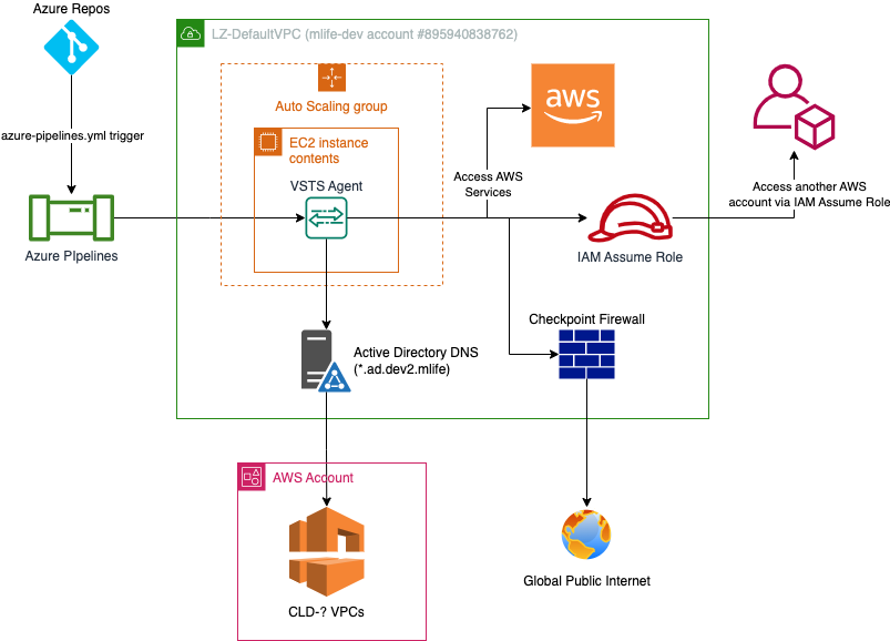 In a nutshell, an agent pool is made up of VSTS Agents. Each agent resides on an EC2 instance, and each EC2 instance has multiple VSTS agents. This is in effort to maximize the utilization of the server. When a job is sent to the pool, typically via Azure Pipelines, an agent is assigned and begins the work. The EC2 instance reports to CloudWatch how many agents it has available and how many are being used.