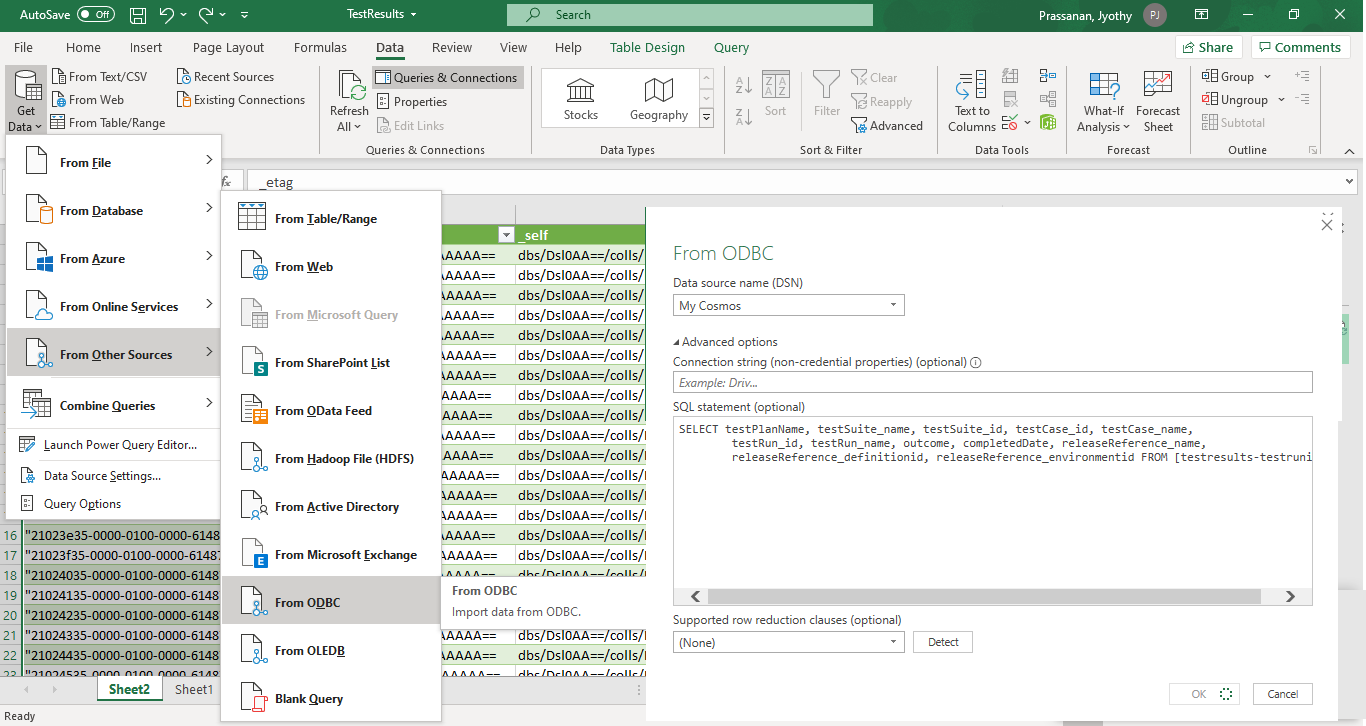 - Open Microsoft Excel. Under Data tab, choose Get Data -> From Other Sources -> From ODBC.