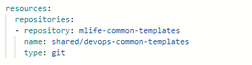 name : is the name of the template in the format {project}/{repository}. Value is always 'shared/devops-common-templates'